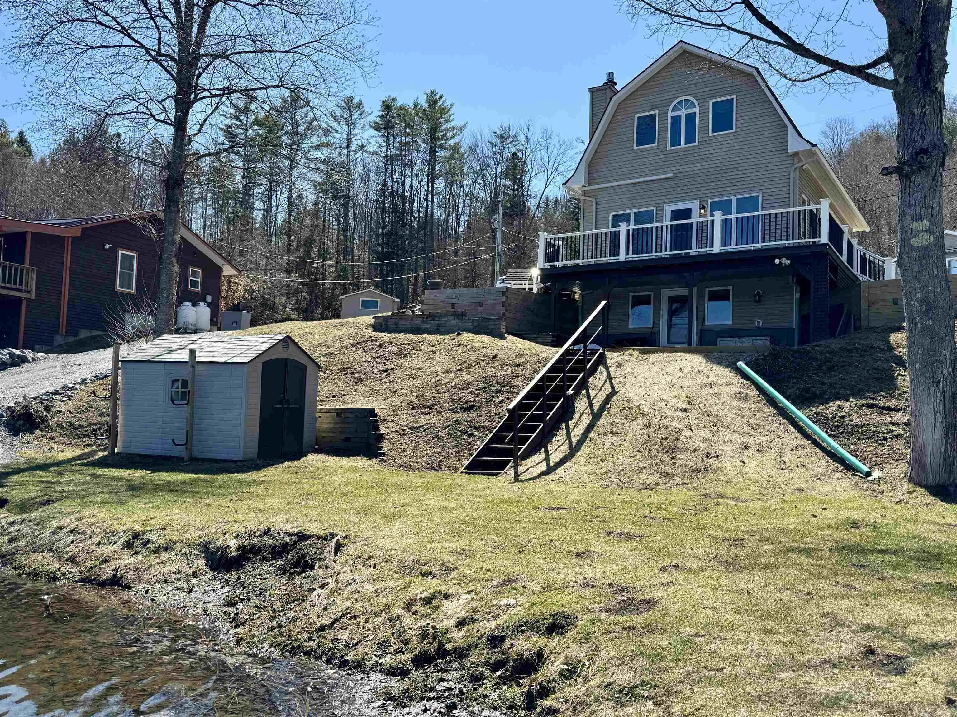 +"PublicRemarks": "This three bedroom, three bathroom home is a very rare, established year round property that is completely updated and located directly on the lake with approximately 65 feet of owned waterfront! This VERY clean home comes completely furnished (with a couple exclusions), including kitchen ware and linens! Wow! There is a laundry room off of the kitchen in a half bathroom. The full bathroom is upstairs with two bedrooms and an additional half bath is in the walkout basement where a third bedroom is set up. Xfinity cable provides high speed internet, wifi and TV. A generator makes sure you never run out of power. Work from home with an amazing easterly view of the lake and local mountains. The current owners did extensive landscaping on the 1/4 acre surveyed lot and added a substantial driveway to increase parking and drainage. Sabin Pond, aka Woodbury Lake, is a very clean 142 acre lake with a thriving community of year round homes and more than eighty summer residents. There are pontoon boats, paddle boards and kayaks greeting neighbors and watching the loons all day. There's waterskiing, tubing, kneeboarding and summer concerts! The Association hosts a Poker Run, Lake Day and several other events. Herricks Cove is a private road that is plowed year round with contributions made by residents who use the road. Come join us!"