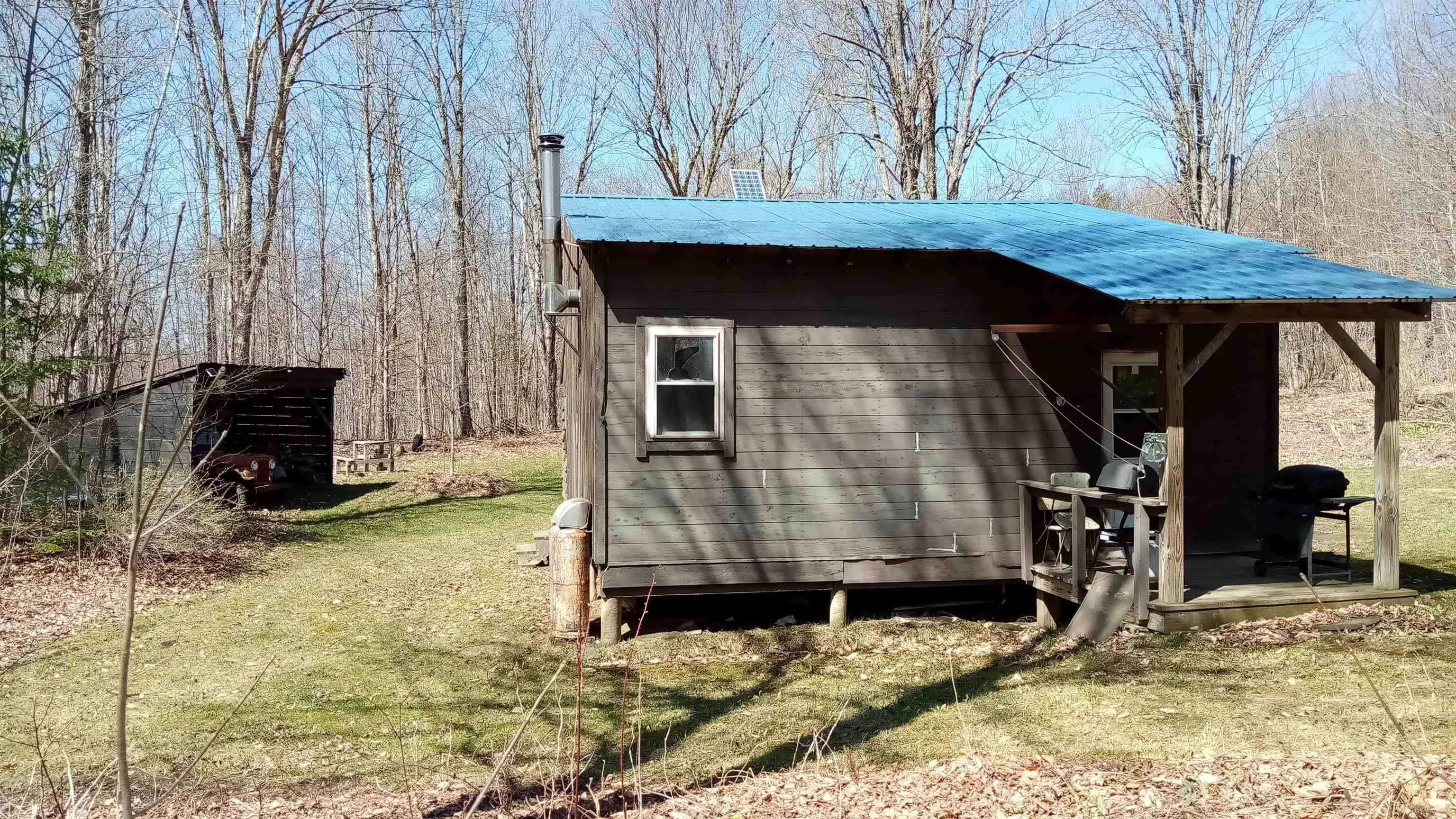 +"PublicRemarks": "21.6+/- wooded acres: a very picturesque woodland parcel with great recreational potential-year round or seasonally: hiking, biking, hunting, snowshoeing/cross country skiing, your name it. The woods road/old farm road rises steeply in places with several switchbacks between Route 14 and the camp that is set well into the woods-at least 1.25 miles off of the state highway. The seasonal camp and sleeping loft is wood framed with steel roof, concrete pier foundation and enclosed front porch built about 1978. A shallow spring, woodshed and outhouse complete the development. The 1961 Jeep plus a small solar system convey with the real estate."