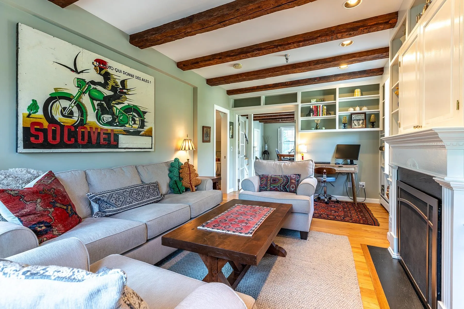 +"PublicRemarks": "ICONIC. Just a stroll across Woodstock's famed covered bridge, this historic property is home to five unique condominiums - premier among them is this gracious, bright, and fully renovated two-bedroom home. With beamed nine-foot ceilings, a true turret (complete with curved glass!), a handsome den, spacious bedrooms, private laundry, and dedicated garage parking, this gorgeous condo is equally desirable as a pied-à-terre or a full-time home. The sweeping lawns lead to the Ottauquechee River and an incomparable view of the covered bridge. Mere minutes from the amenities and attractions of Woodstock village, the location is ideal - walk to Faulkner park and access miles of trails at the Marsh Billings Rockefeller National Park or zip over to Saskadina Six for the best family ski hill around. With quick access to I-89 and the Upper Valley beyond, this condo offers the charms of the historic with the conveniences of the contemporary. Uncommonly available and highly desirable, this unique opportunity is not to be missed."