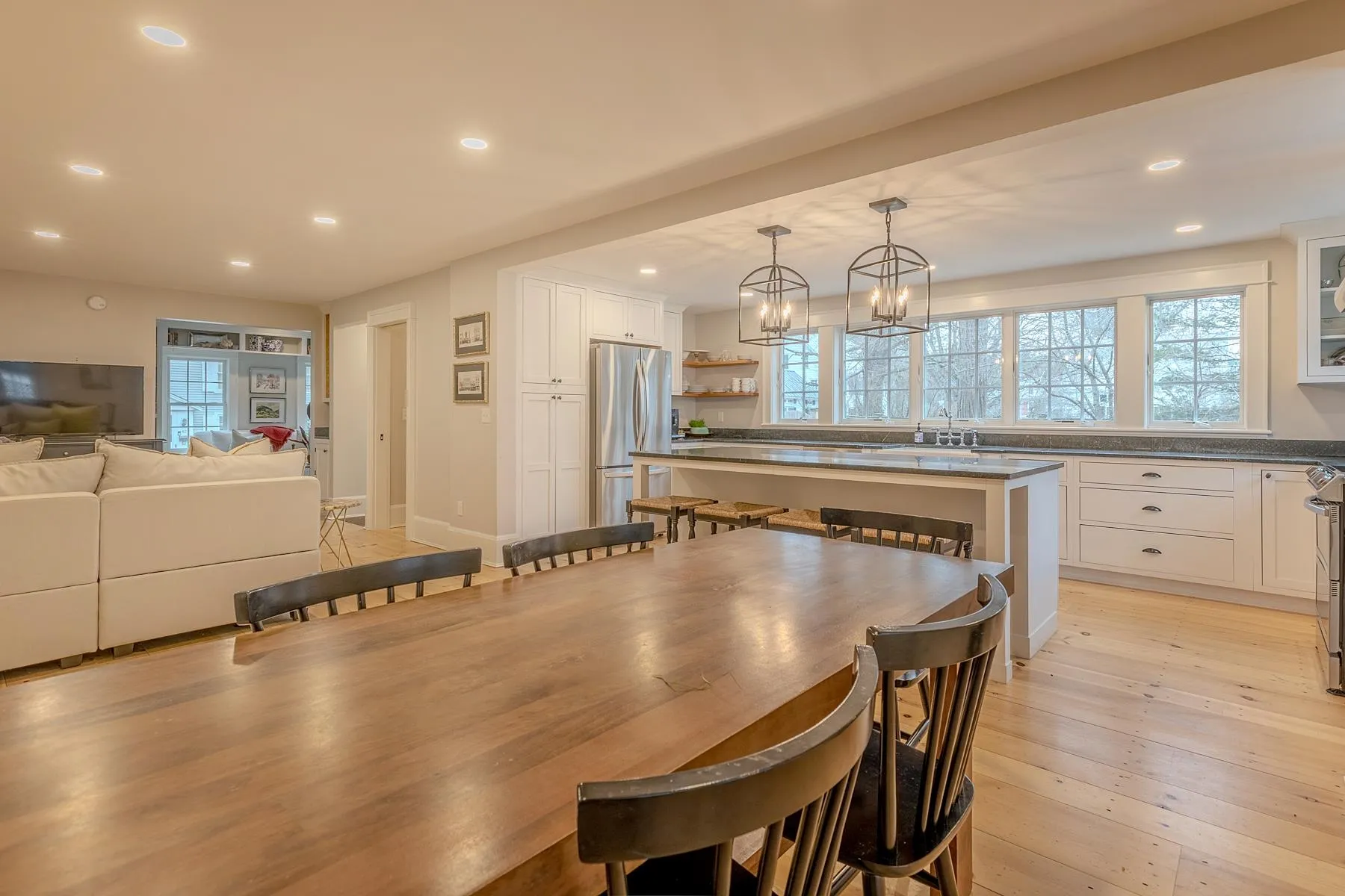 +"PublicRemarks": "Beautiful residence with newer renovations...located in the heart of historic Woodstock. Sunlit rooms, open floor concept with handsome refinished original pine floors. Stunning kitchen with stainless appliances, oversized island and soapstone counters accent the new cabinetry. Large dining room for entertaining with lovely screened in porch with double doors that lead out to a privately enclosed courtyard. First floor also features a mudroom, new 1/2 bath, family room and gracious formal living room accented with bookshelves. Second floor consists of a large primary bedroom, a guest bedroom and newly renovated full bathroom and laundry room. Third level has another 2 bedrooms or could be used as offices. This residence is the south side (left side) of the building and includes new mini split a/c units, a storage shed and perennials gardens. Walk to all of towns amenities, shops and restaurants. Mt. Tom National park and hiking behind the house for those nature enthusiasts, championship golf, skiing and fly fishing near by. 20 minutes to the Upper Valley and Dartmouth. Wonderful opportunity to own this charming home in one of Vermonts prettiest towns."