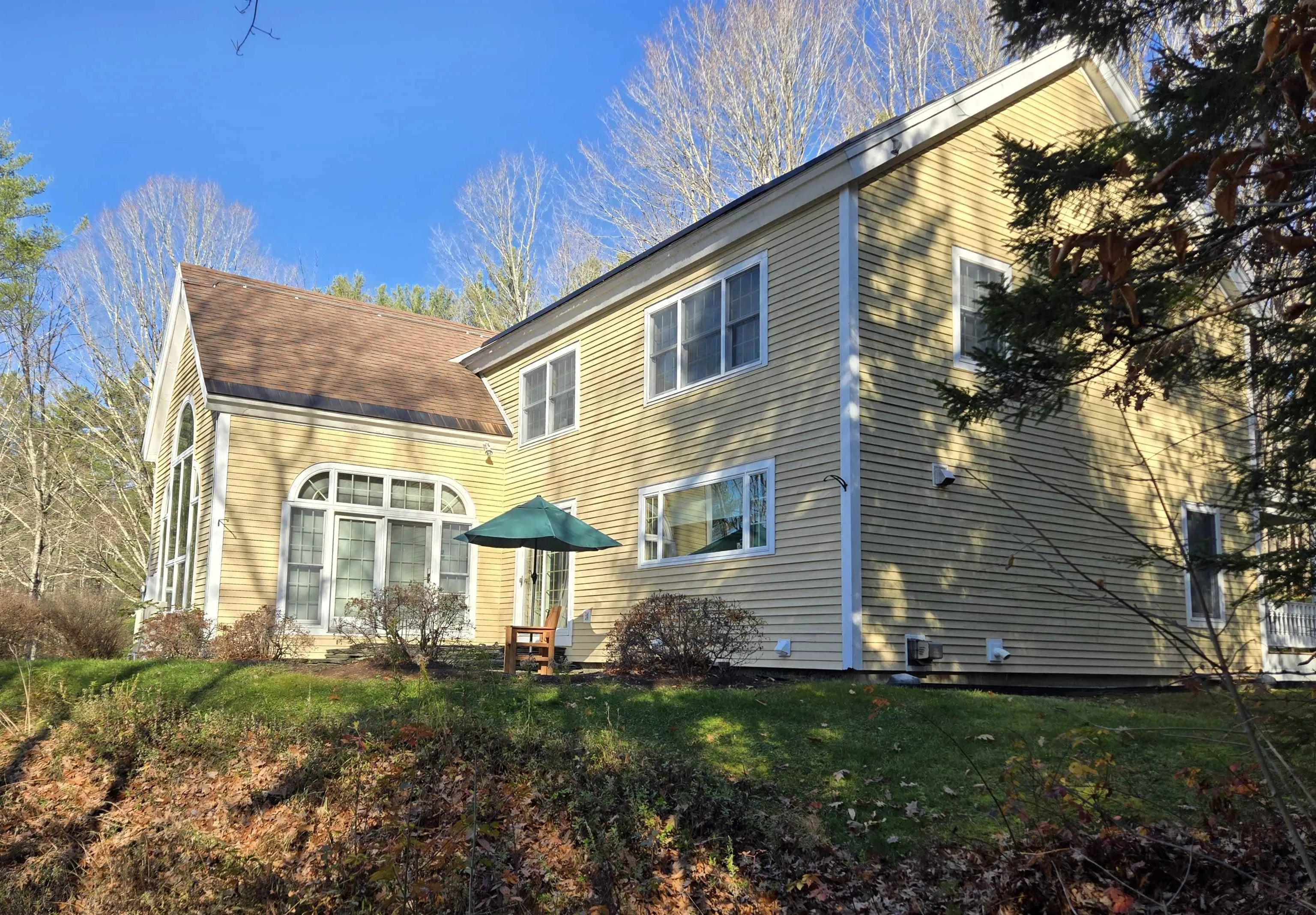 +"Remarks-Public": "Nestled in the desirable rear section of Oak Knoll, this end-unit condominium offers added privacy and a peaceful patio overlooking the woods. The charming living room features exposed wooden beams, attractive laminate flooring, and a warm, inviting feel enhanced by soft pastel tones throughout. Upstairs, you’ll find two comfortable bedrooms and a full bath. The home also includes in-unit laundry, with additional coin-operated facilities available for larger items, along with access to a workout area. A new outdoor green space is planned for 2026, adding even more appeal to the community. Recent upgrades provide both comfort and efficiency, including an energy-efficient York furnace (2020), appliances less than three years old, a newer sliding door to the patio, and three high-efficiency portable air conditioners (approximately four years old), all included with the sale. Conveniently located just 10 minutes from Dartmouth College and 15 minutes from Dartmouth Health, this pet-friendly community also offers easy access to nearby walking trails—perfect for enjoying the outdoors."