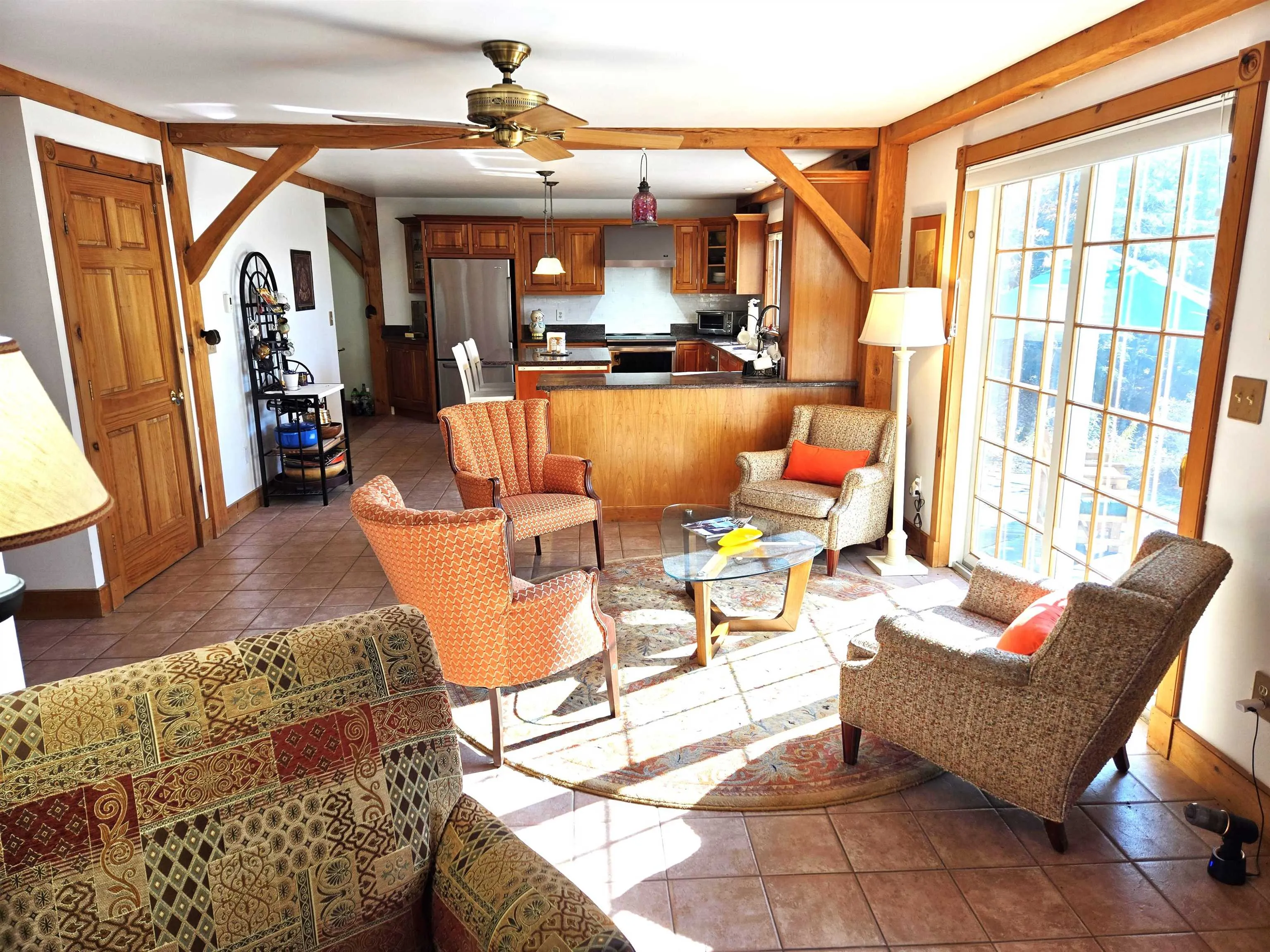 +"PublicRemarks": "A gem of a property on 12 spectacular, mostly wooded, acres in the desirable Deerbrook Way area of Woodstock. Four+ miles to all the amenities of Woodstock Village and 8 miles to the Skyship Gondola at Killington. Built in 1994, this custom designed red oak Post and Beam Contemporary provides everything you would want in a primary residence or a get away vacation retreat. Situated on a 12+ acre parcel unlike most. The lot alone is an adventure with its view potential, adventurous topography and great options for adding a trapper cabin or a martini deck for enjoying the incredible Vermont surroundings. Room for everybody with four bedrooms, three full bathrooms. Bedroom on main floor with ensuite bath for main level living. Well appointed kitchen with cherry cabinets, granite countertops and brand new induction range Plus an office/study, and a light filled vaulted ceiling great room. In addition, the property includes a stone patio, a heated three car garage, solar roof top panels that reduce your monthly power bill to less than the cost of a breakfast for two, and a Tesla power wall back up power system that provides uninterrupted power in the event of a power failure. Also included is a dedicated Tesla EV charging unit."