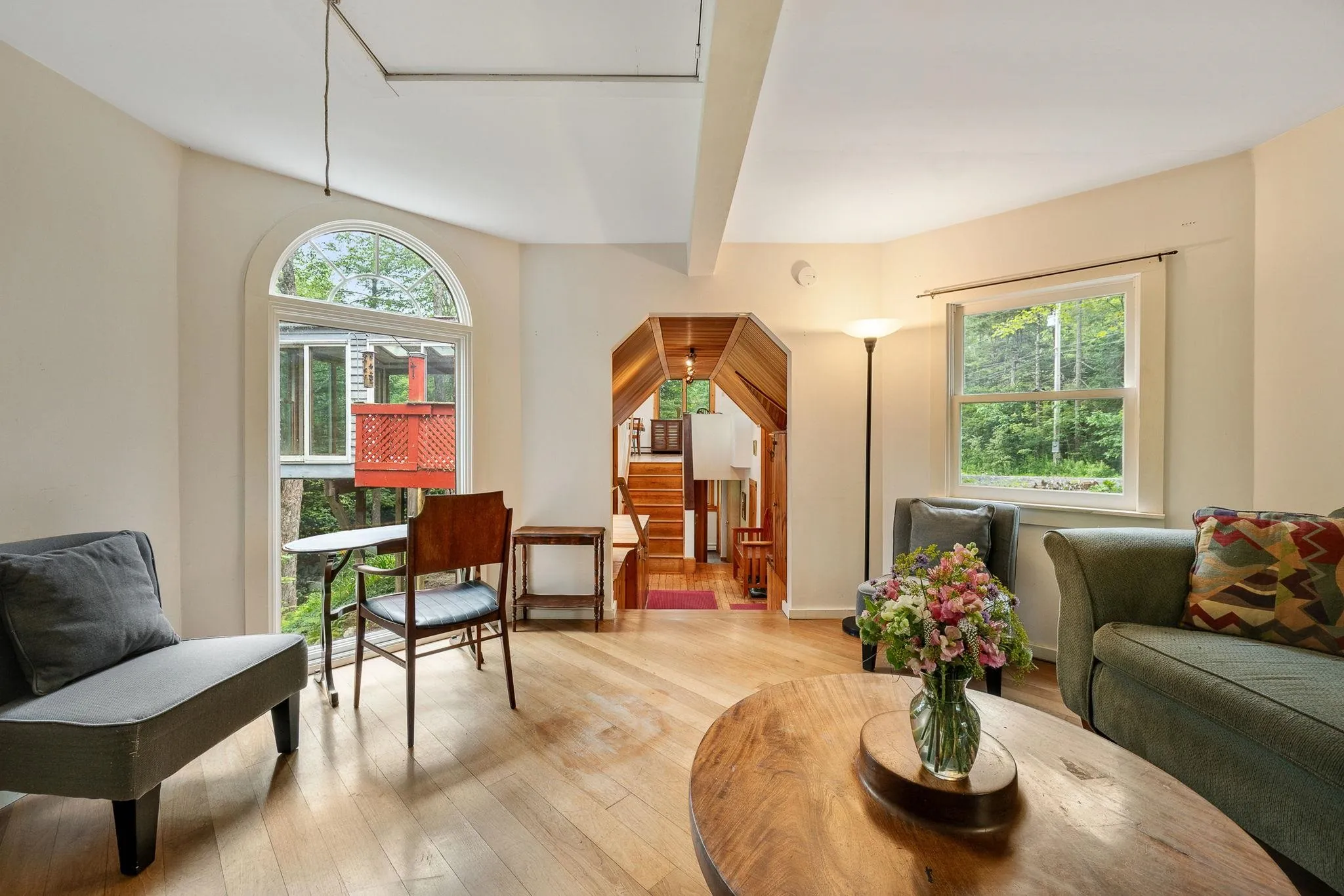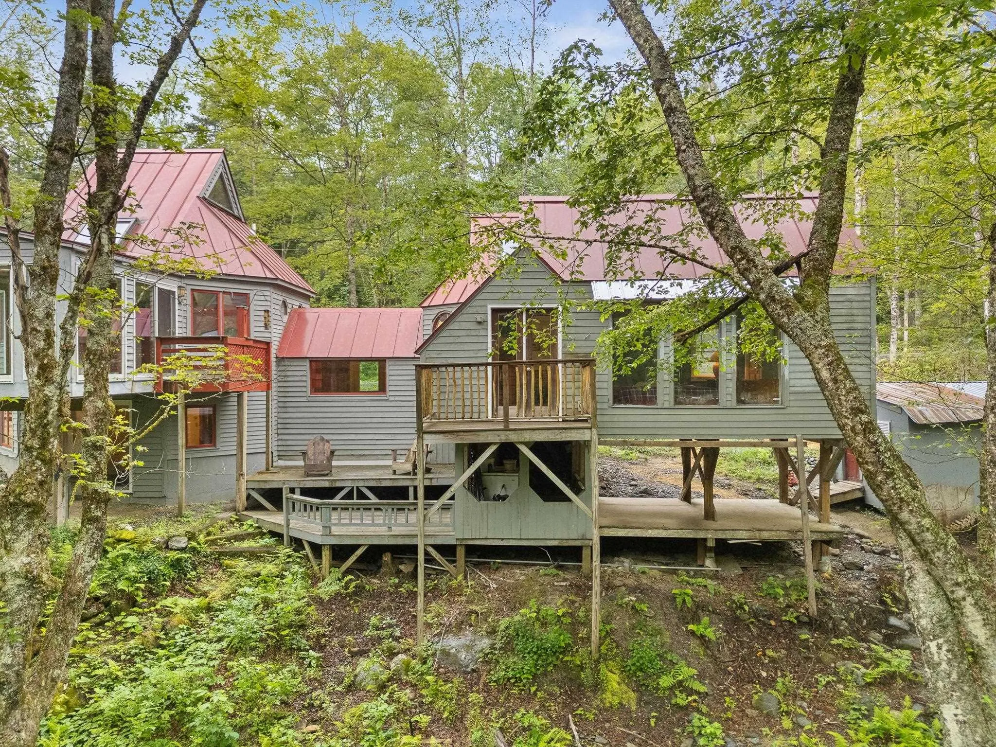 +"PublicRemarks": "Welcome to the Brook Tree House! A one-of-a-kind architectural retreat on 10 acres along pristine Hancock Brook in Worcester. Designed & built by an architect, this octagon home blends thoughtful design w/ nature, offering 1,500+ sq ft of living space in a tranquil forest setting. Perched above a picturesque swimming hole w/ 1,000+ ft of brook frontage, this 3-bed, 1-bath home features cathedral ceilings, a sunroom w/ stunning water views, & a cozy woodstove. The red standing seam roof & wood siding add rustic VT charm, while a moisture barrier & new vinyl flooring enhance the finished walkout basement. A sleeping nook in the attic, accessed by dropdown stairs, adds whimsical charm & functional space. Also on the property: a rustic one-room cabin perfect as guest quarters, writing studio, or yoga retreat. Near the trailhead to Worcester Mtn, this property offers direct access to year-round recreation: hiking, biking, & skiing. Cyclists will love the area’s compact gravel roads & scenic rides. During ski season, Sugarbush, Stowe, & Bolton Valley are all <35 mi away. Located in the desirable U-32 school district & near the local elementary school & vibrant Worcester community known for its arts fest & strong spirit. Whether you're seeking a full-time home, nature-infused getaway, or income-producing rental, this forest sanctuary is a rare & inspiring find."